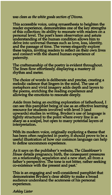 The Glassblower’s House Review by Ashley Lister in Writing News